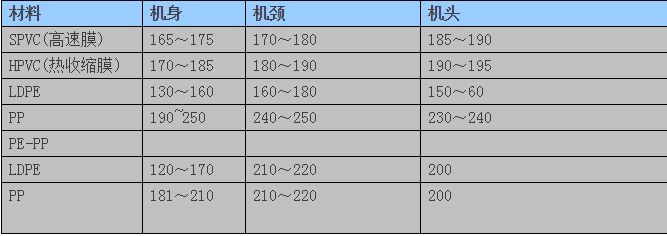 3、溫度:溫度控制是吹塑膜工藝中的關鍵,是影響質量的重要參數。這種溫度控制方法的優點是物料所經受的高溫時間短不易分解,可減少拆卸機頭的次數,提高機器生產的能力(見表1)。